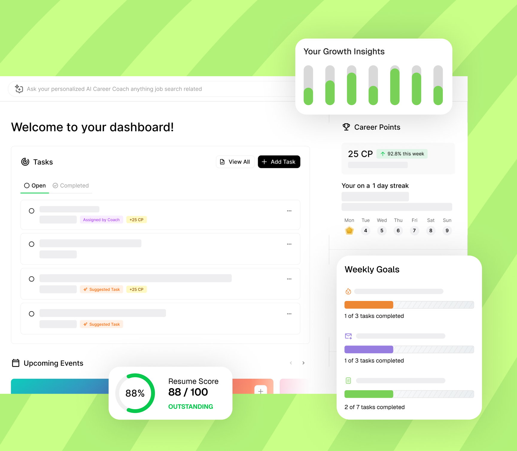 - Gamified weekly goals and Career Points keep students coming back