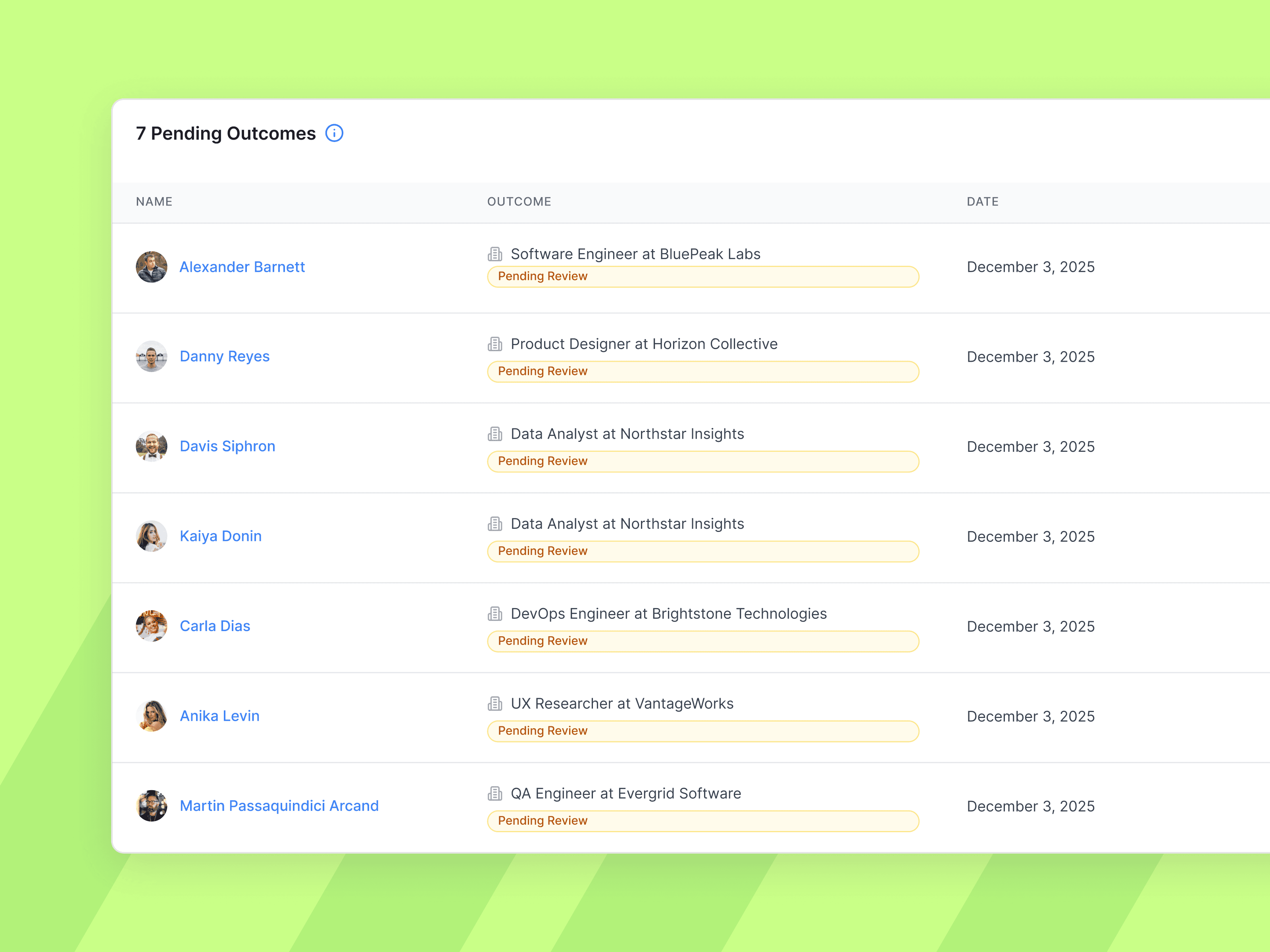 LinkedIn profile scanning, SMS surveys, and employer-reported placements update automatically. Track in real-time, report on demand.