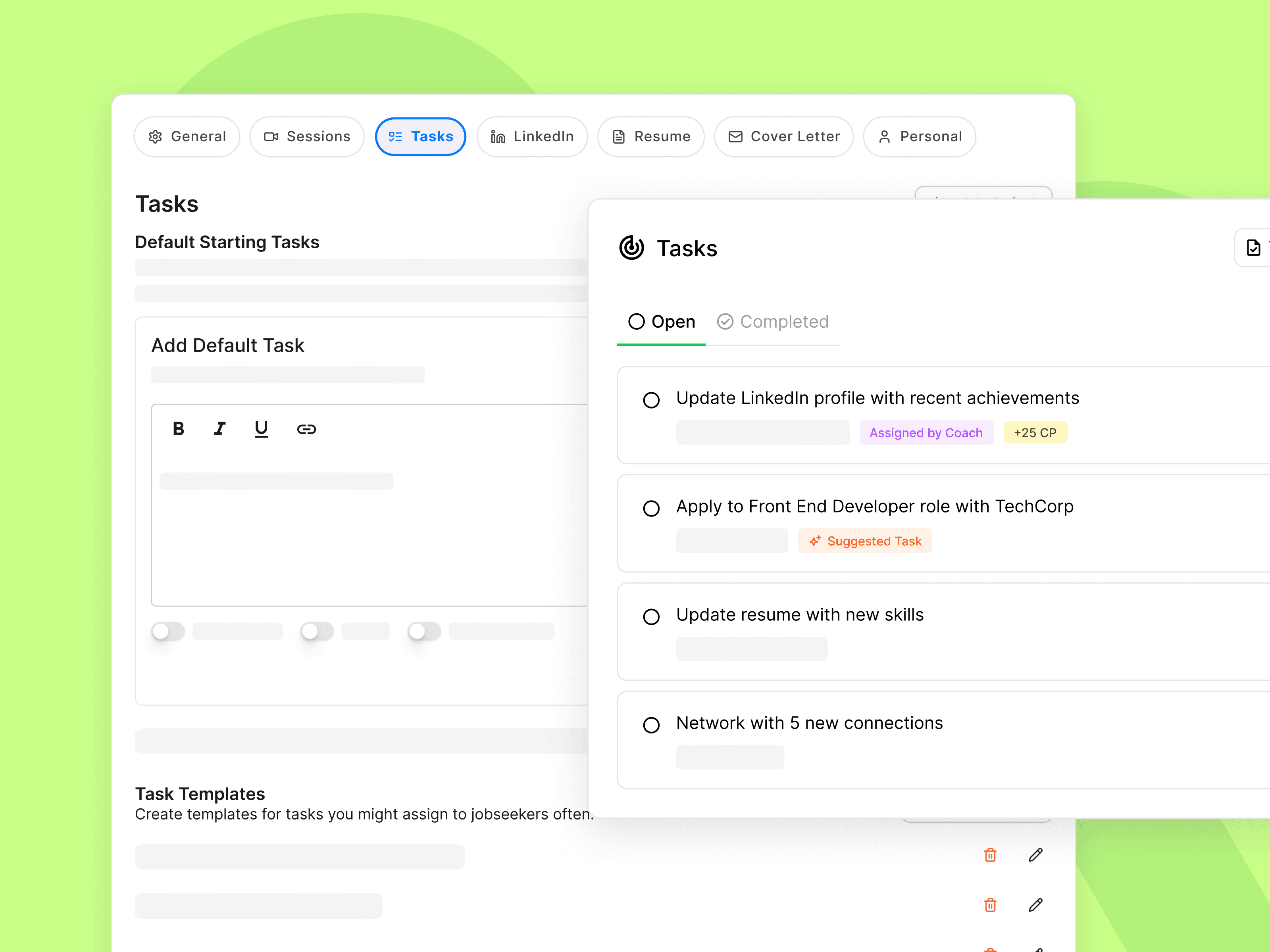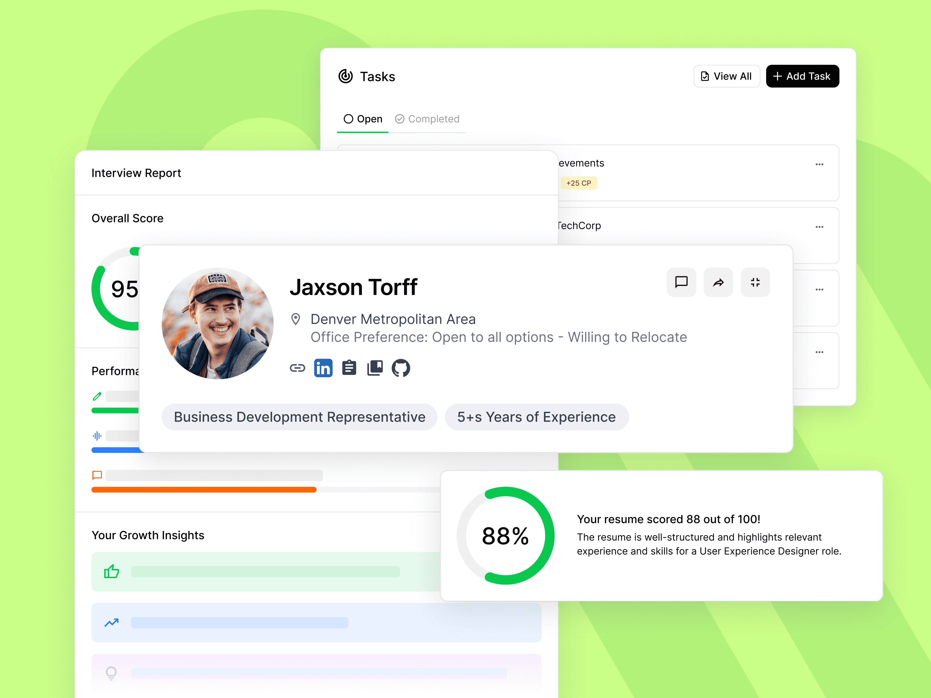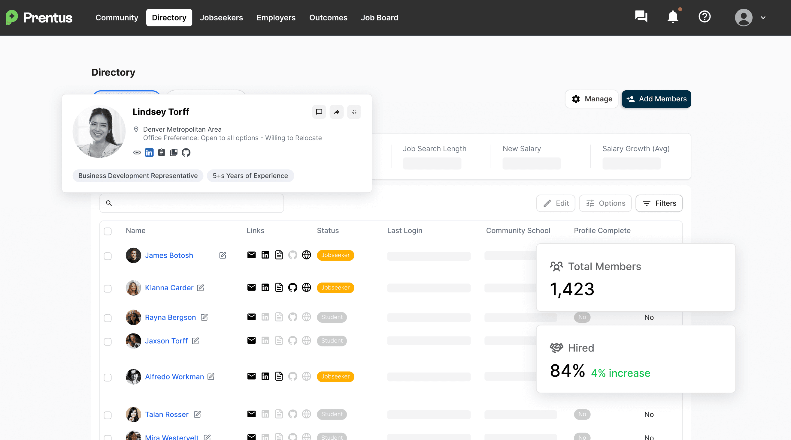 Students aren't using 5 separate tools that don't talk to each other. When they build a resume, it's available in their job tracker to be tailored for each role. When they track a job, they can practice interviews for it. When they network in your community, connections get tracked. One platform means one experience, for students and for you.
