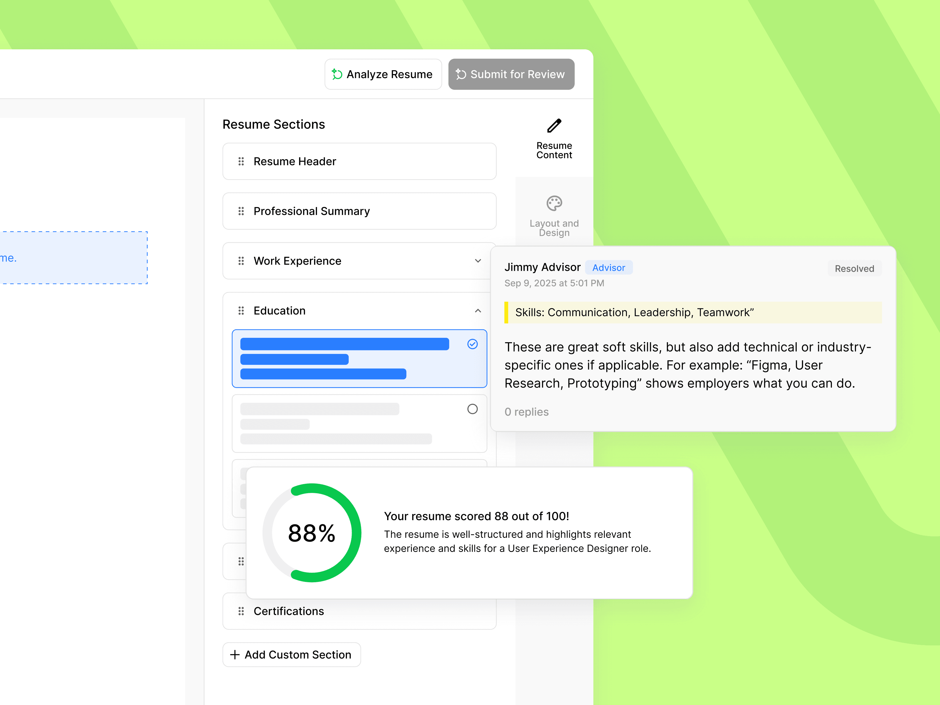 What This Means for You: Reduce advisor review cycles. Students arrive to appointments with job-ready materials.